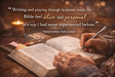 “I had read the Bible for years, but this ministry helped me truly connect with God's Word. Writing and praying through Scripture made the Bible feel alive and personal in a way I had never experienced before.”