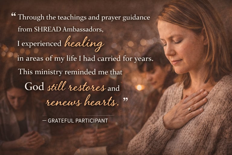 “Through the teachings and prayer guidance from SHREAD Ambassadors, I experienced healing in areas of my life I had carried for years. This ministry reminded me that God still restores and renews hearts.”